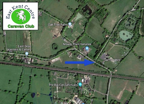 Take A2 to Dover. At Connaught Barracks roundabout take first exit onto A258 Deal Road. Continue on this road through Ringwould and Walmer. Turn left on B2056 Cornwall Road. Continue under the railway bridge going into Hamilton Road and follow s-bends into Manor Road. Go straight over mini-roundabout onto London Road. Take second left onto Mongeham Road. The road starts to narrow but there are passing places. Follow the road to a left hand turn into Mantles Hill. Site on left (sign posted Caravan and Camping Clubsite and Solley’s Ice Cream). Follow EKC signs