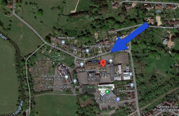 Take Junction 10a of M20 and follow signs for A2070. At the Brenzett roundabout go straight over and continue on A259 to Rye. Go past the rugby club, over the river and at the roundabout take the 2nd exit onto Rye Road. Proceed for 0.2 miles and turn left into Deadman’s Lane. Go round the left-hand bend and