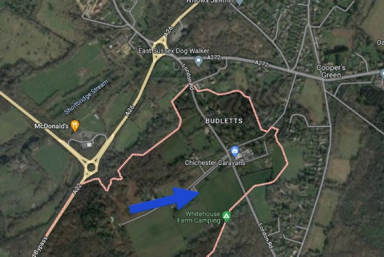 Take A26 to Tunbridge Wells. Continue for about 13 miles to Budletts roundabout and take the first exit onto London Road A272 to Uckfield. Continue on road for about 0.3miles and past Blue Asia Indian Restaurant on your right. Just before Chichester caravans turn right into White House Farm. Follow EKC Signs. Do not go to reception as you will already be booked in, Follow signs to “Buzzard” Rally Field.