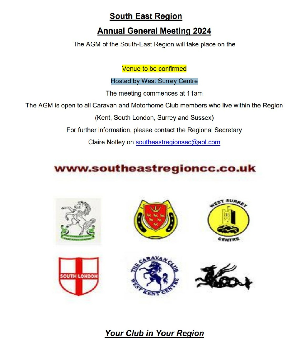 (Booking slip and payment must be received by the 1st April 24) BACS Payment with Rally Number or Cheques made payable to “The Caravan Club, East Kent Centre” |