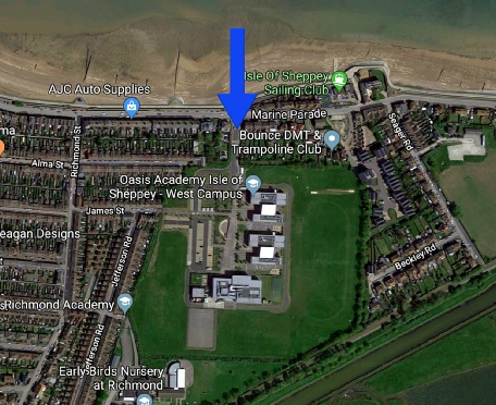 : From M2 junction 5 take A249 towards Sittingbourne/Sheerness. After crossing the bridge take the right hand lane to roundabout and take 2nd exit to A2500. At next roundabout take 1st exit A2500. In 0.7 miles at roundabout take 1st exit onto Barton Hill Drive. In 0.5 miles at roundabout take 1st exit Barton Hill Drive. In 0.2 miles at mini roundabout/T junction turn right onto Minster Road/B2008. At next mini roundabout turn left into The Broadway. Follow the road to the seafront and into Marine Parade. In about 1.2 miles, take a left turning into school premises. Follow EKC signs.