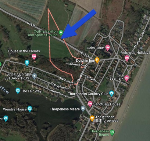 N/Ipswich/A1156. Continue on A12 for about 11 miles going over about 8 roundabouts. Just after Farnham take A1094 to Snape/Aldeburgh. Go past Aldeburgh golf club, at next roundabout take 1st exit onto Leiston Road (B1122). In about 2.5 miles take left turn to Thorpeness (B1353) opposite Parrot at Aldringham pub. Continue on this road for